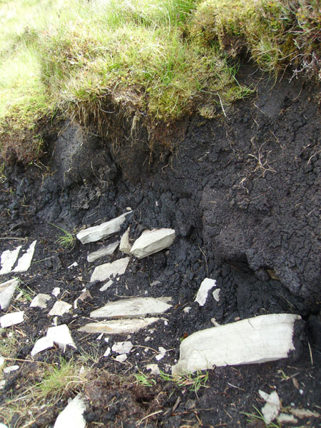 Stein und darüber 2 Meter dicker Torf
