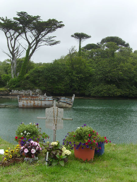 Das frische Gedenkkreuz steht vermutlich in keinem unmittelbaren Zusammenhang mit dem alten Wrack.