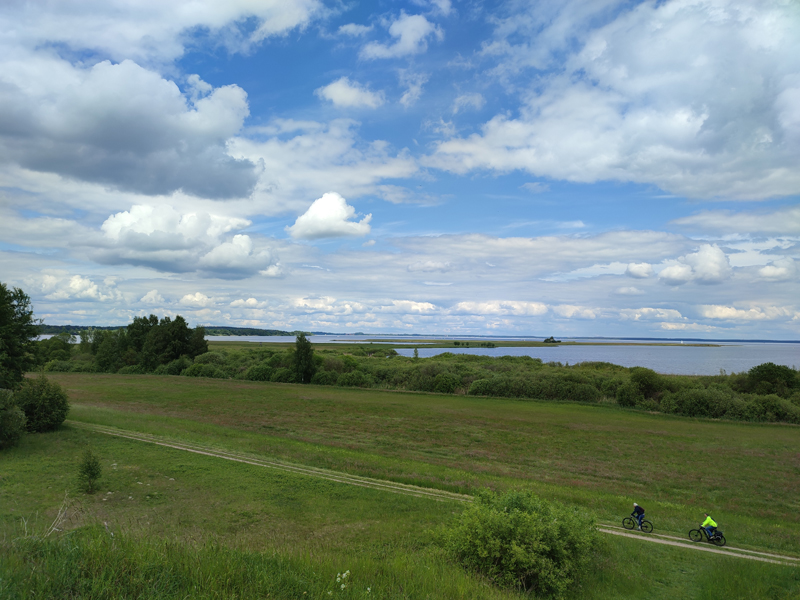Blick auf den Großen Schwerin, ein Vogelschutzgebiet, das von Rindern beweidet wird.