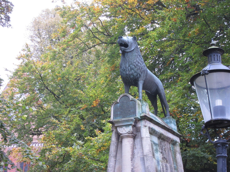 "Zum Gedenken an Heinrich den Löwen, Herzog von Bayern und Sachsen, 1129 – 1195. Er setzte den Wegbereiter des Christentums in unserem Lande Vicelin in Oldenburg zum Bischof ein. Er gründete im Jahre 1159 die Stadt Lübeck wieder. Er erhob Lübeck im Jahre 1160 unter Bischof Gerold zum neuen Sitz des Bistums und begann im Jahre 1173 mit dem Bau des Domes."
