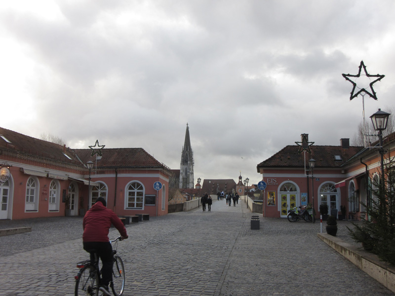 Blick von Stadtamhof über die Steinerne Brücke nach Regensburg
