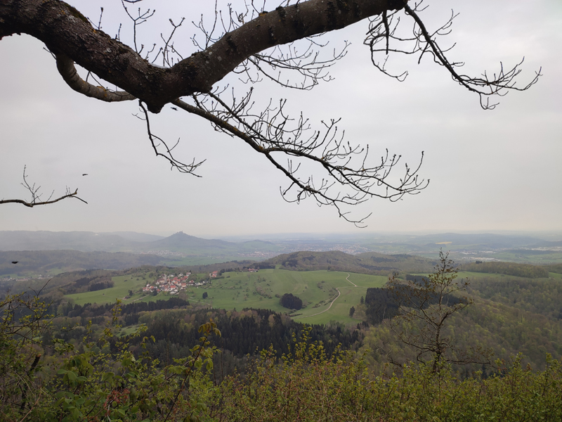 Blick vom Dreifürstenstein – in der Mitte links kann man die Hohenzollernburg erahnen