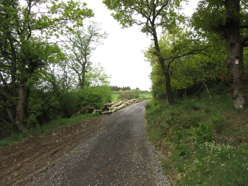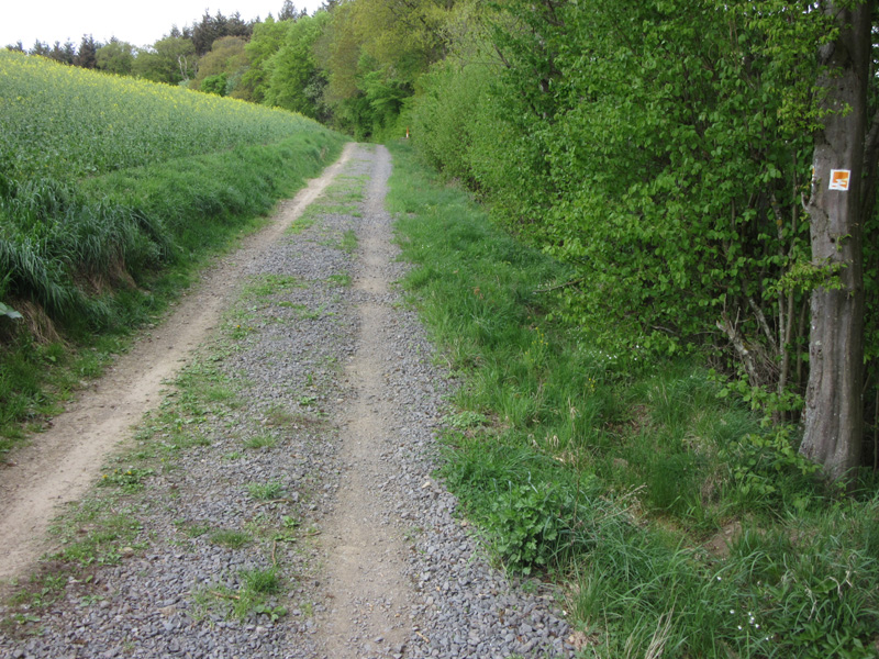 Nicht alle Traumpfade erfüllen die mit dem Namen verbundenen Erwartungen. Mein größter Kritikpunkt ist die Beschaffenheit der Wege. Es gibt zum Teil kilometerlange Abschnitte, die über geschotterte oder gesplittete Wirtschaftswege führen. Diese Bereiche sind oft landschaftlich eher eintönig, aber vor allem nervt der Lärm, den jeder Schritt auf diesem für Wanderwege untypischen Beleg macht. Unten ein paar Bilder.